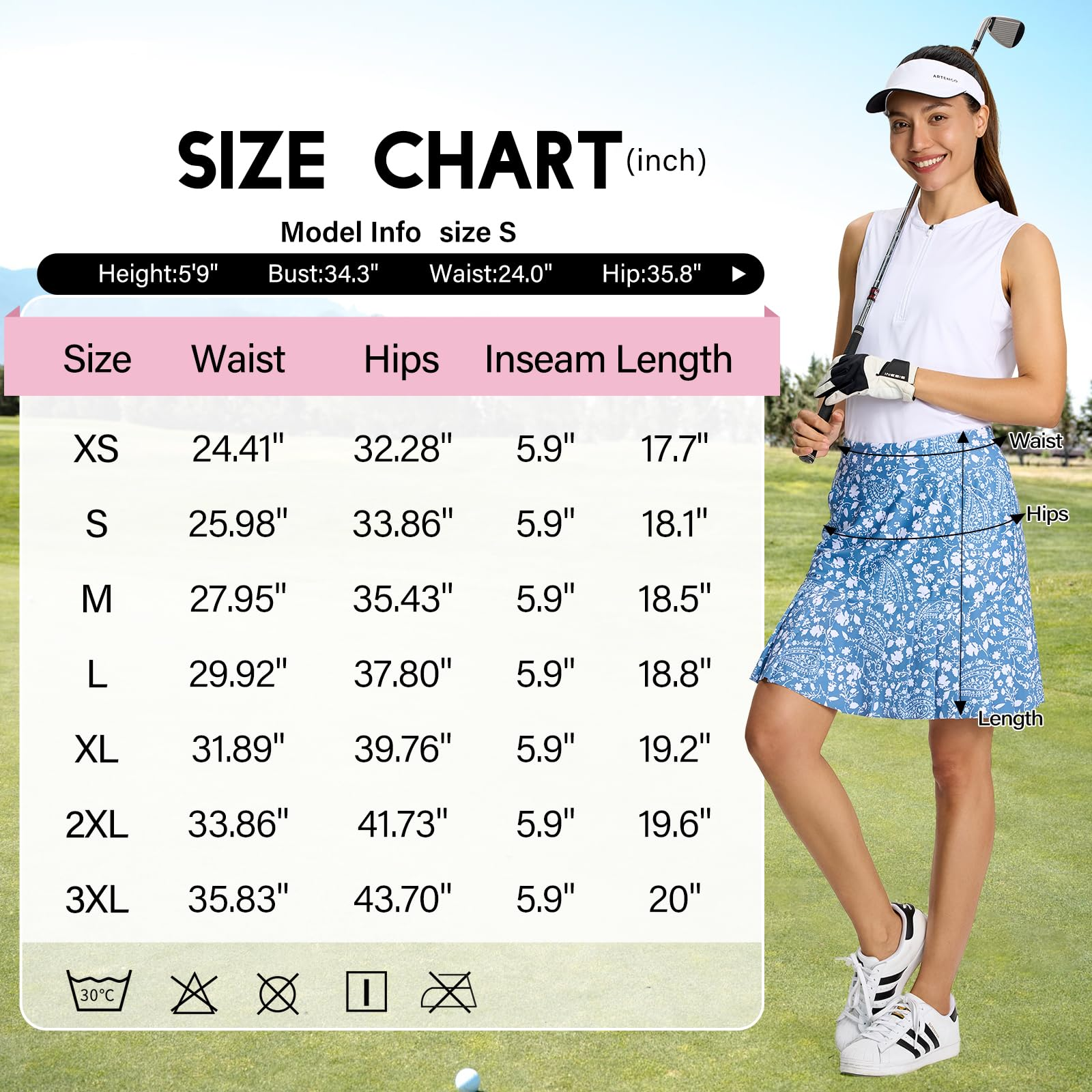 Women's knee-length flounced hem short skirts, polyester sports shorts with pockets for fitness and running, adjustable golf shorts, suitable for adults